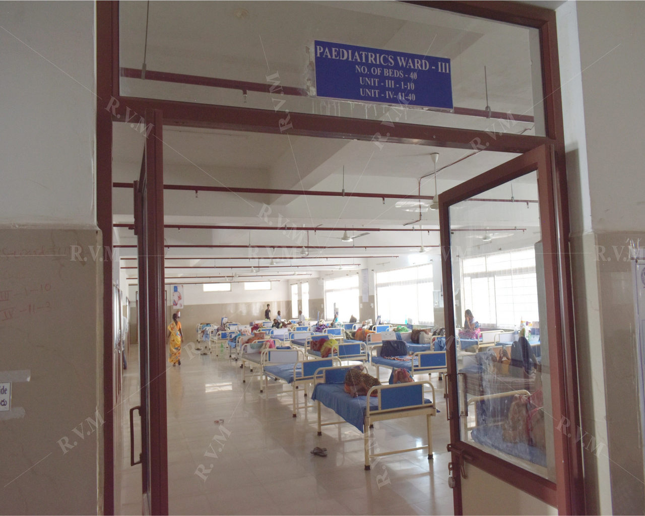 There is a 120 bedded pediatric ward where cases like gastro enteritis, acute respiratory cases like Bronco pneumonia, Bronchial Asthma, Hyper Pyrexia with febrile conversion, viral meningitis, poisoning cases and chronic cases like congenital heart disease, neurological disorders etc., are admitted for investigation and management