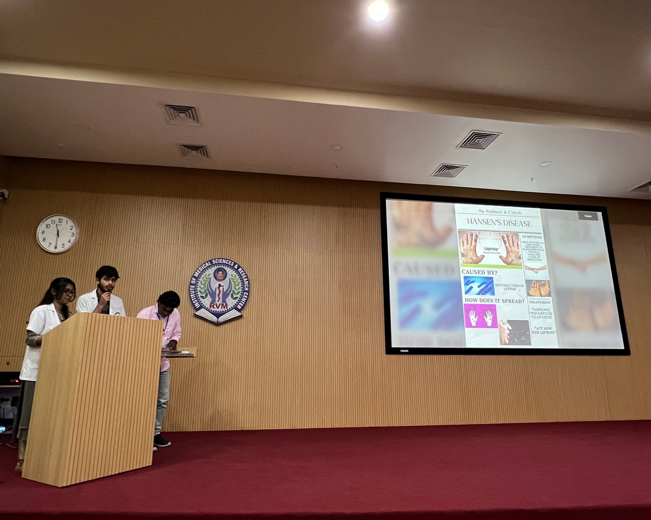 To bring about awareness of leprosy amongst undergraduate and postgraduates of RVMIMS & RC Institution. The program was conducted by department of Dermatology Venerealogy Leprosy and Community Medicine.