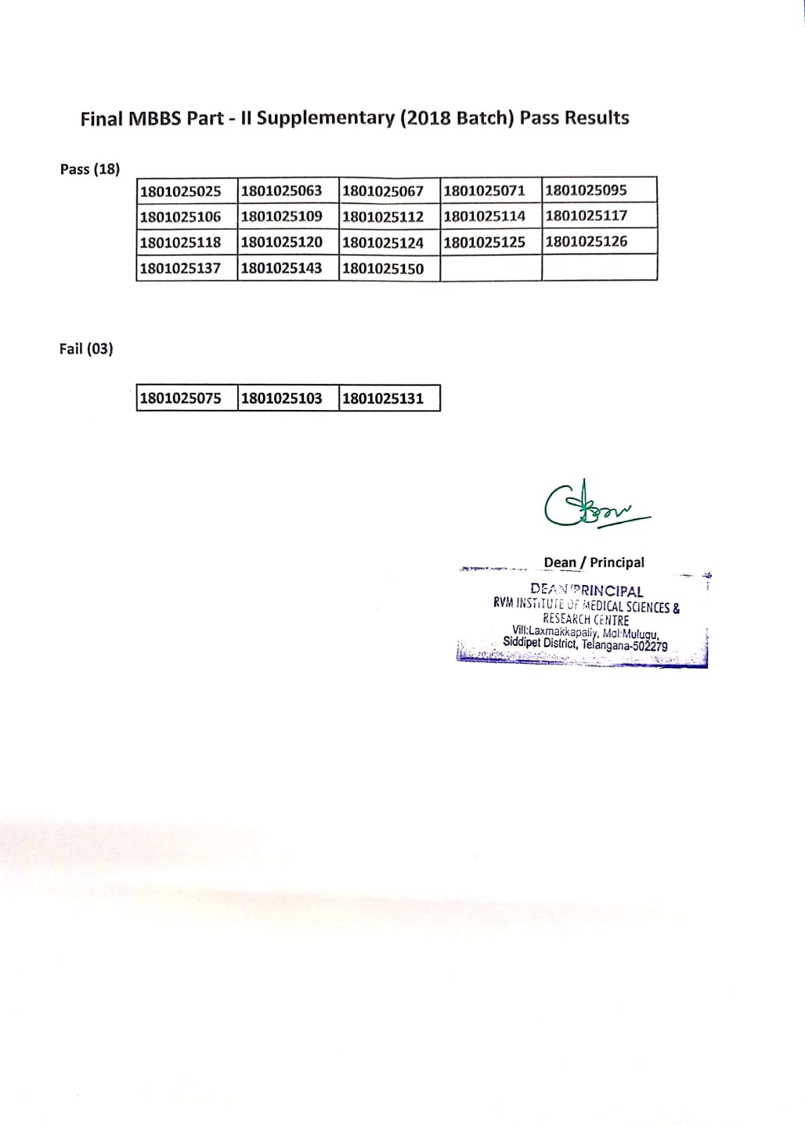 Final MBBS Part -II (2018 Batch) Examination Result (Supplementary) |