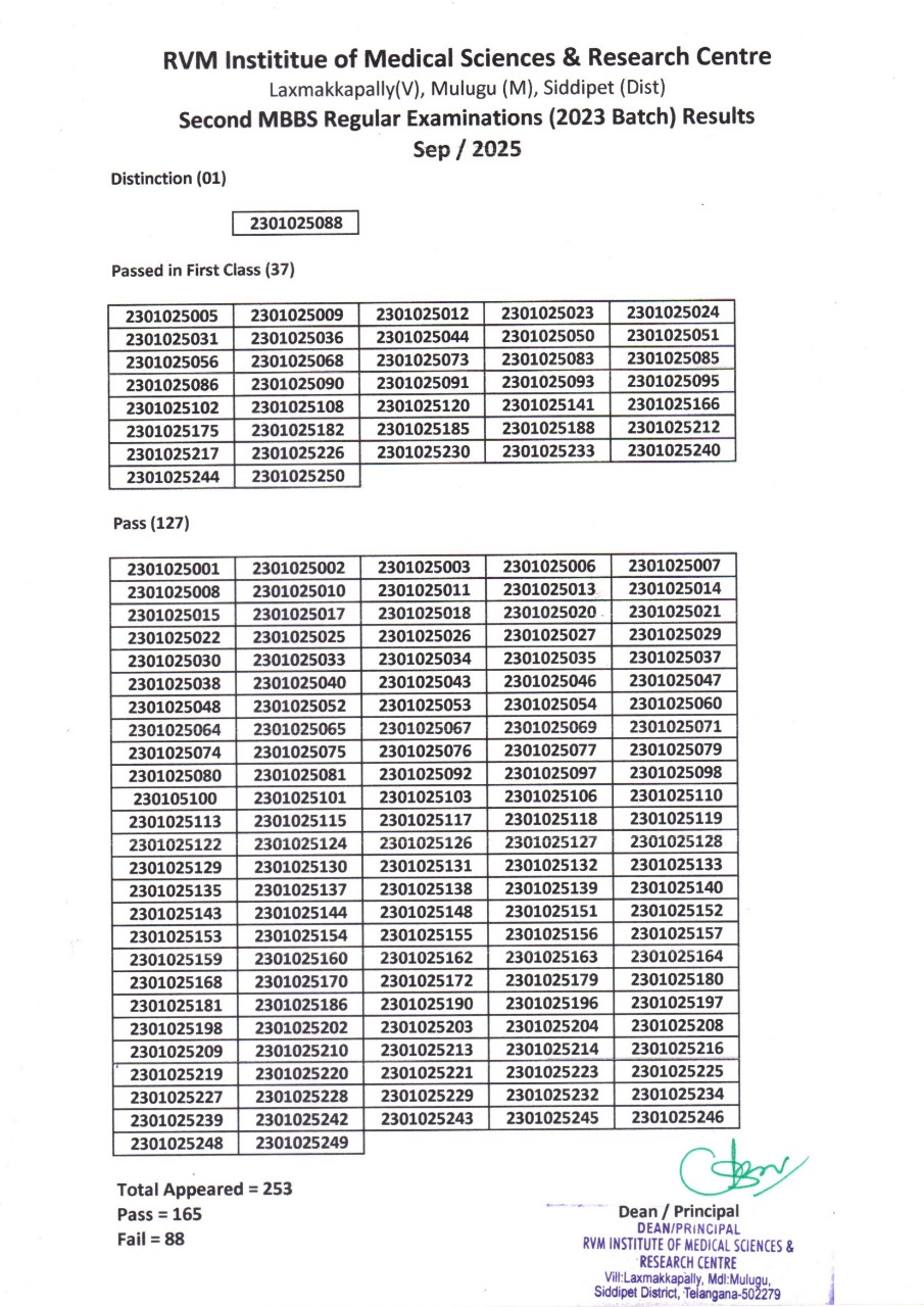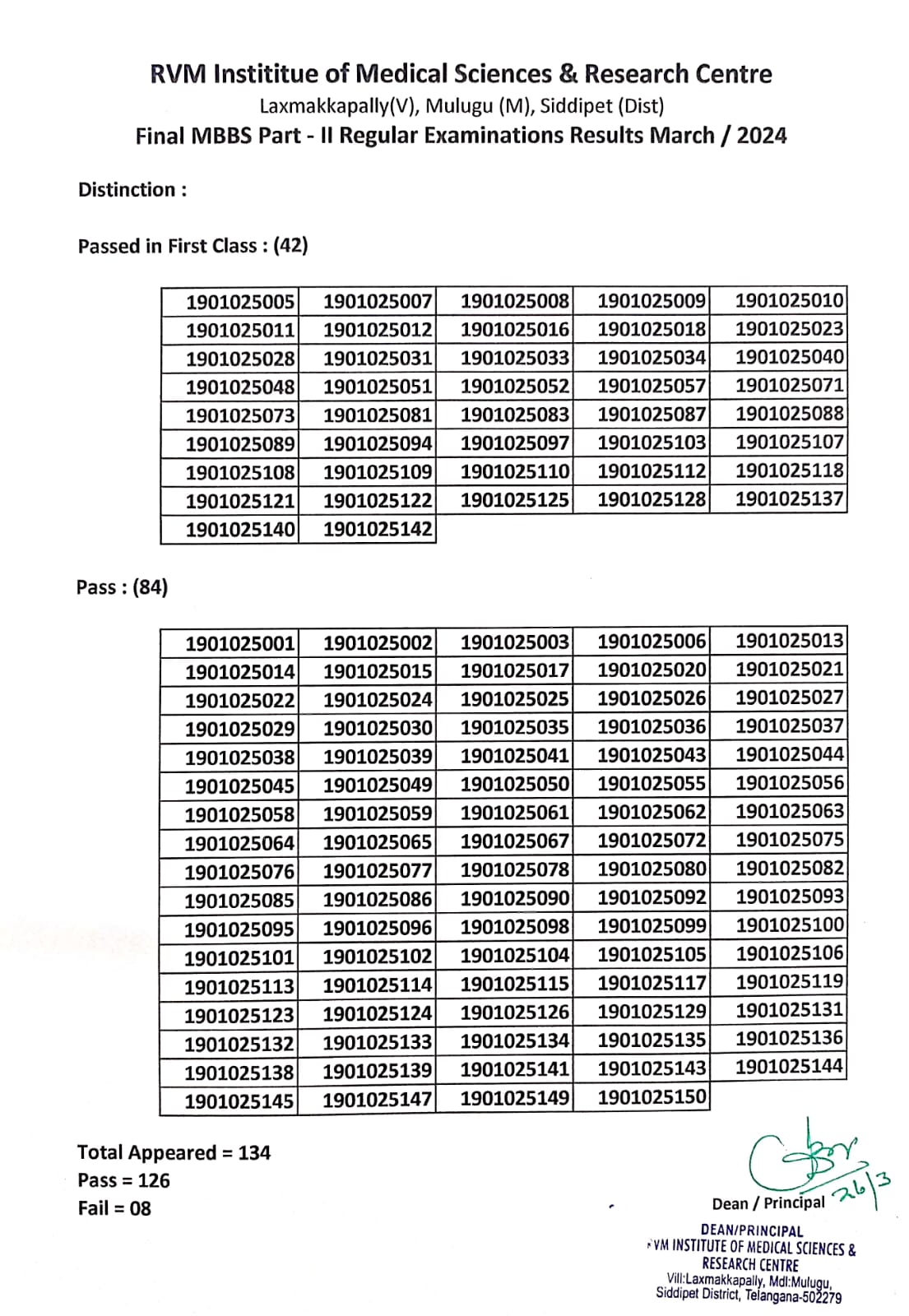 2nd MBBS (2023 Batch) Regular Examination Result |