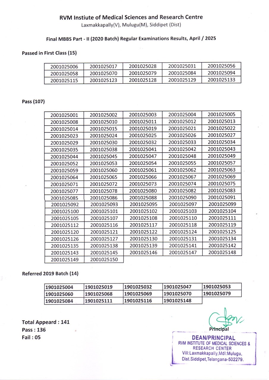 Final MBBS Part -II (2019 Batch) Examination Result |