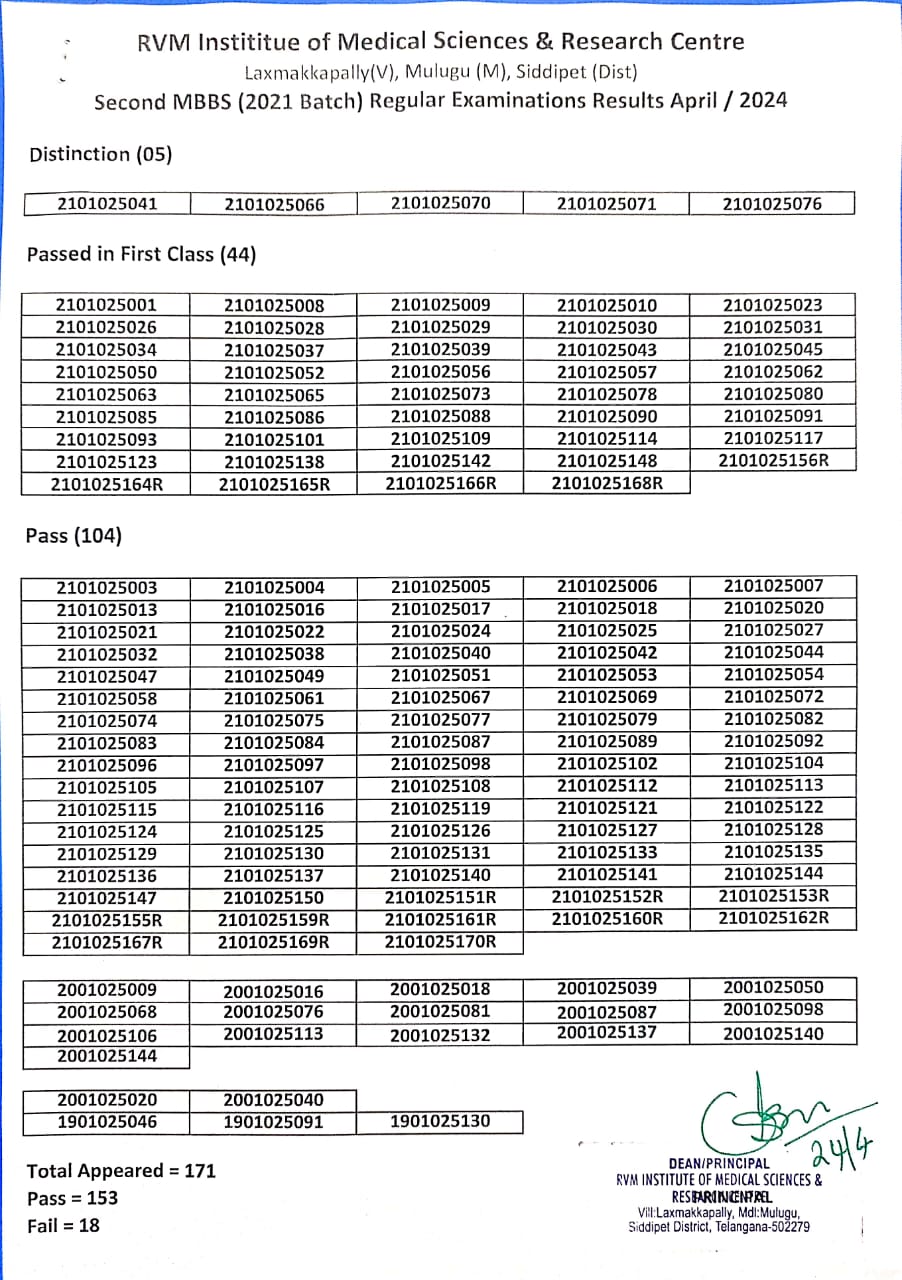 MBBS 2nd Year (2021 Batch) Examination Result |