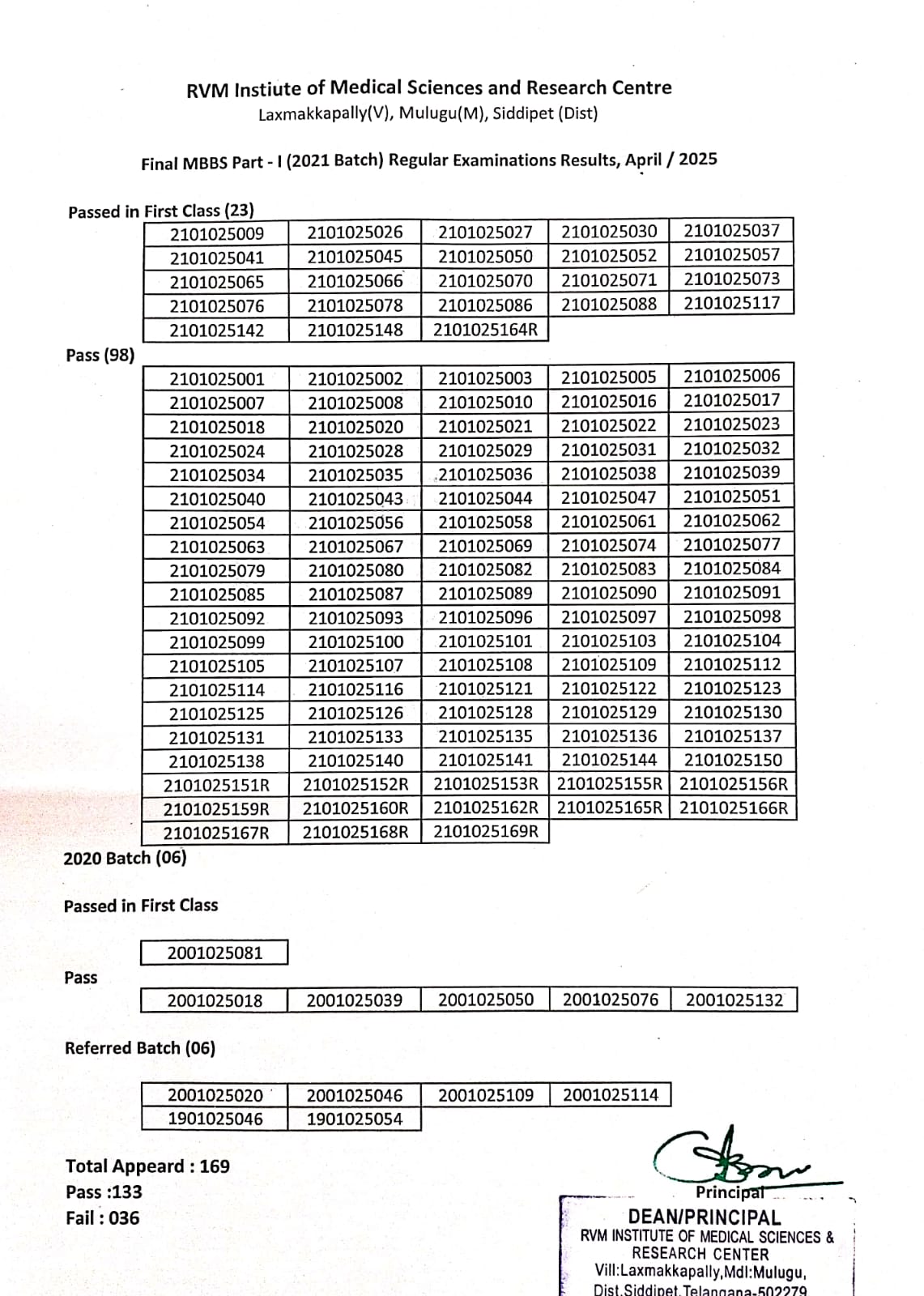 Final MBBS Part -I (2021 Batch) Examination Result |