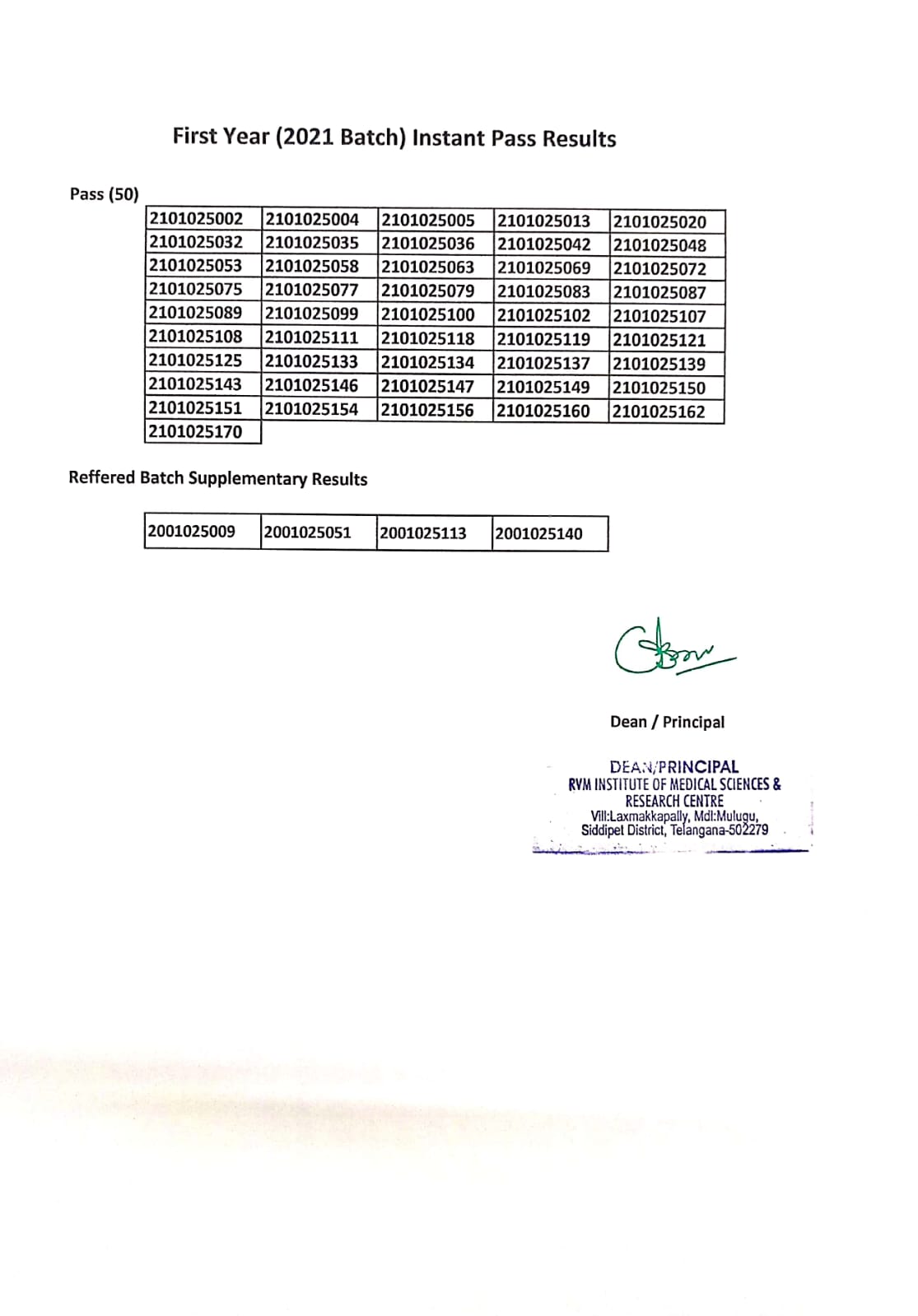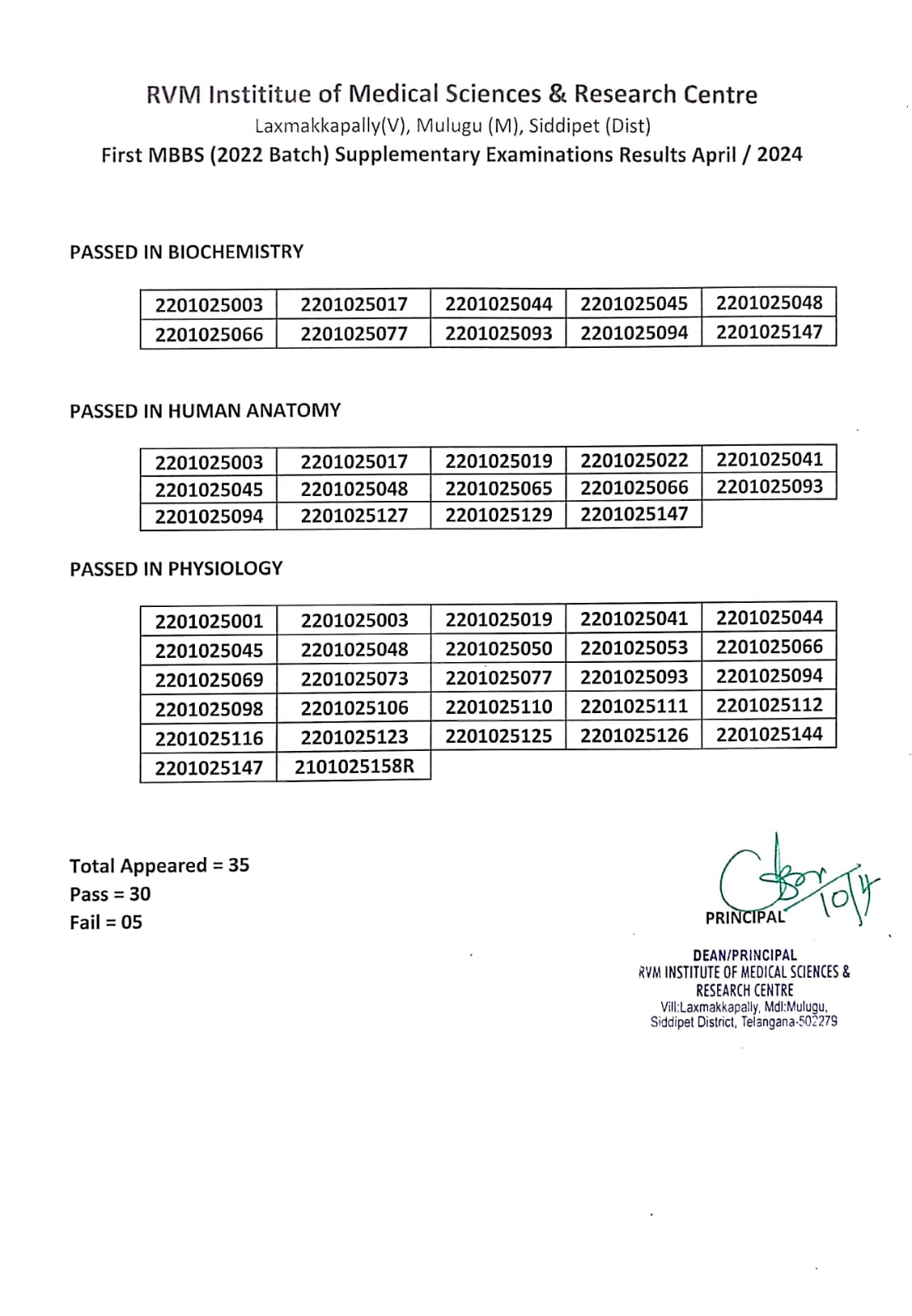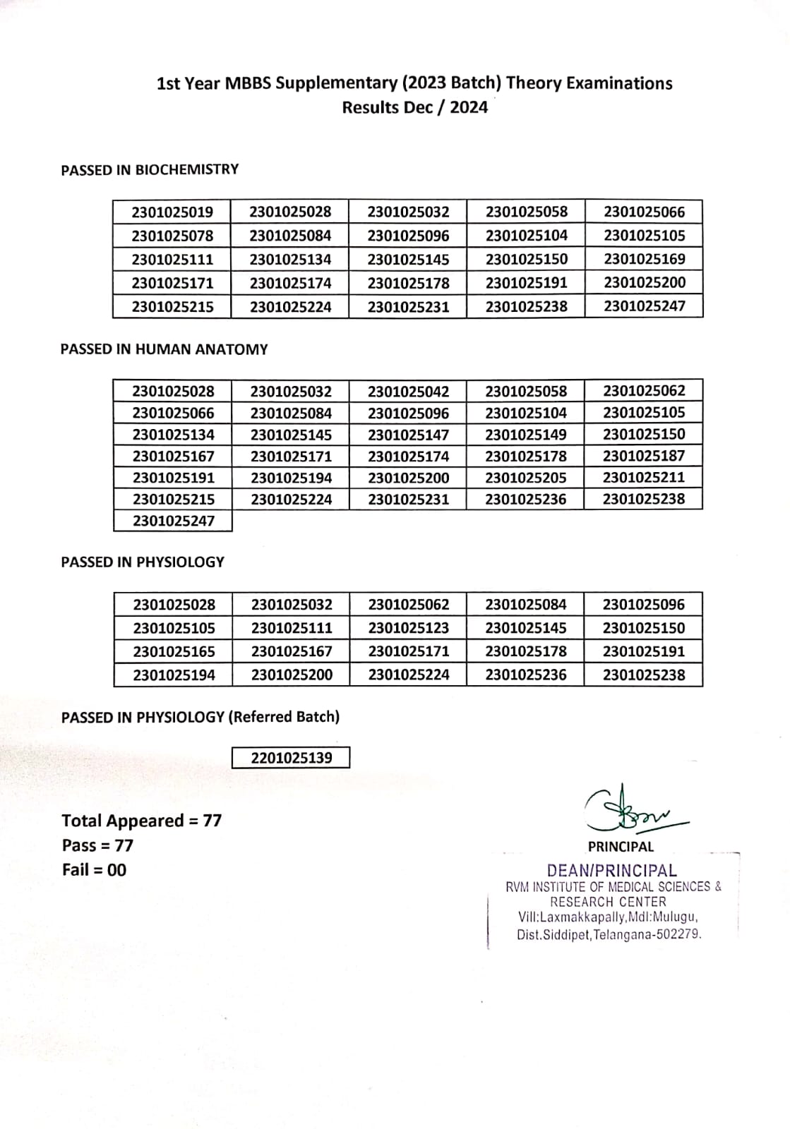 MBBS 1st Year (2023 Batch) Supplementary Examination Result |