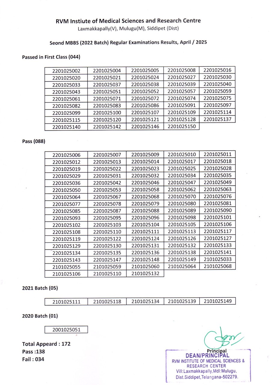 MBBS 2nd Year (2020 Batch) Examination Result |