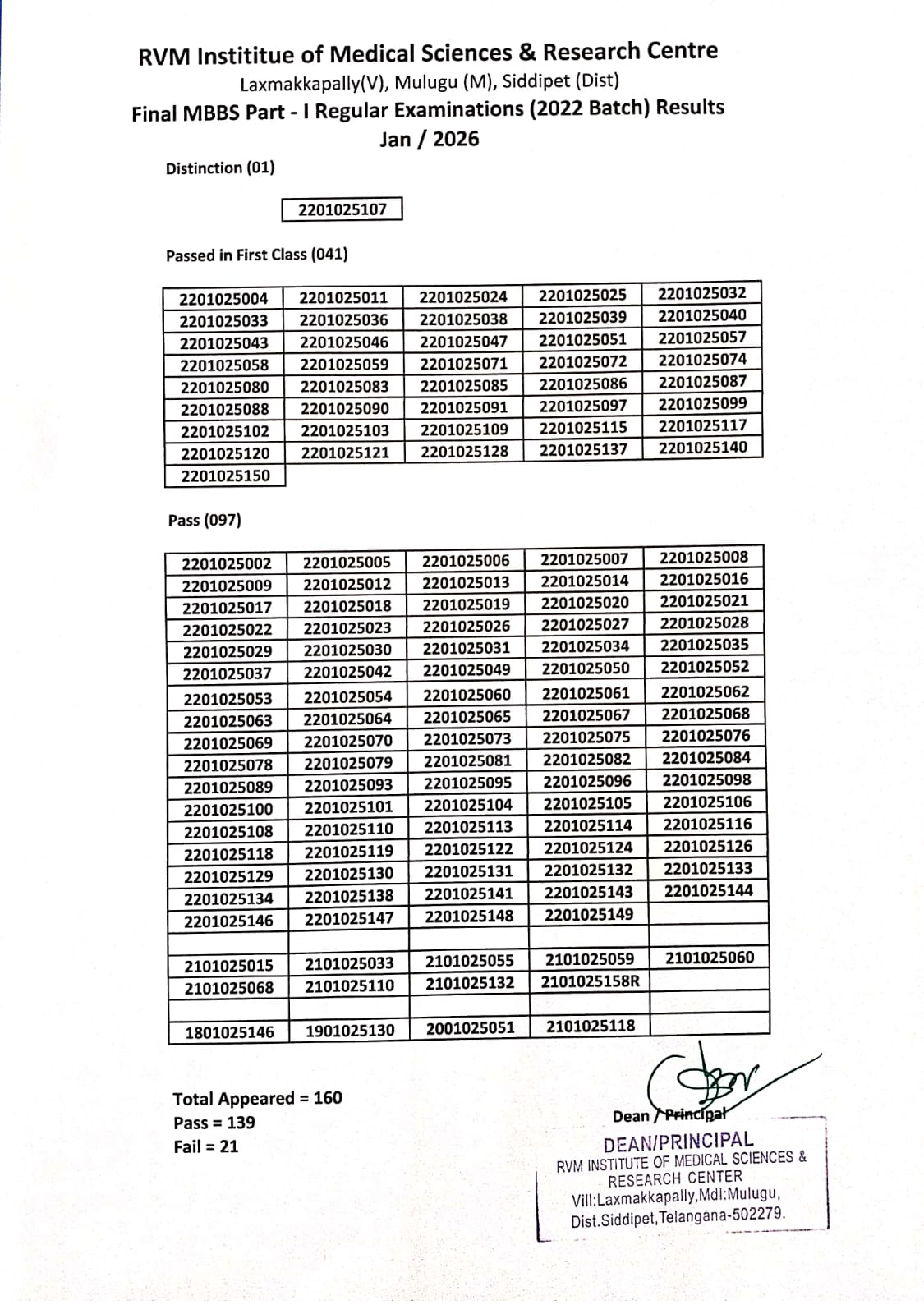 MBBS 2nd Year (2021 Batch) Examination Result |
