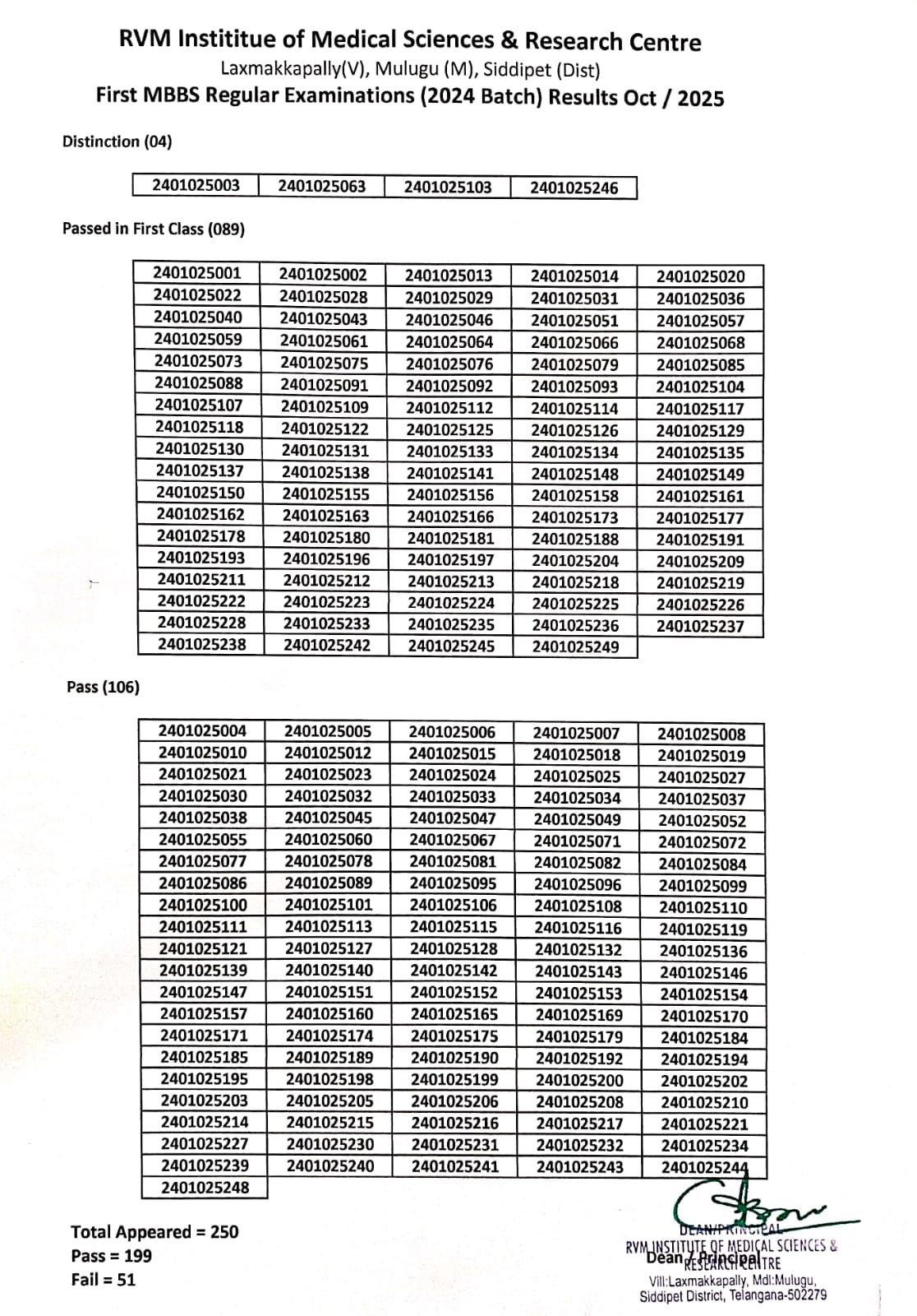 MBBS 2nd Year (2019 Batch) Examination Result |