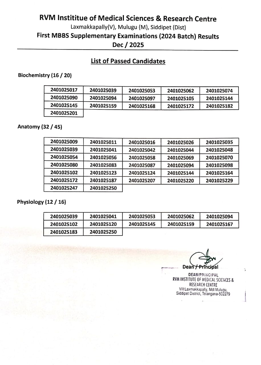 MBBS 1st Year (2024 Batch) Supplementary Examination Result |