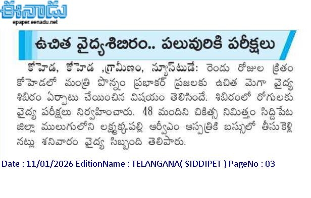 Keshireddypally Village Camp Kamareddy Village Camp Dhongala Dharmaram Camp Chinthamadaka Camp Bondugula Village Camp Alair Camp Alwal camp Bommala Ramaram camp Kamareddy camp Dhabbaguntapally Village camp Bandlavenatapur camp Konne Village camp Mallial Village Mega Health Camp Bhuvanagiri Village Camp Kamareddy Camp Yadgarpally Village Camp Bhuvanagiri Mandal Camp Ankireddy Pally Village Camp Chegunta Village Camp Dubbaka Village Camp Koheda Village Camp Anajipur Village Camp Vallampatla Village Camps Ponnal Village Camp Kidney Cancer Indupriyal Village Thoguta Village Camp Veerannapet Village Thirumalapur Village Camp Waddepalle Village Camp Maddur Village Camp